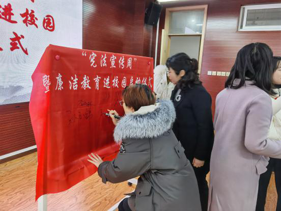 30余名师生代表,在签名板上签名承诺,将“廉”铭记于心,将“洁”深化于行。
