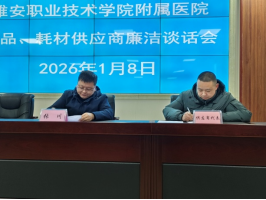 为进一步规范采购与使用管理,强化源头风险防控,深入贯彻落实全面从严治党要求,营造清正透明、健康有序的“医商”合作环境,1月8日,雅安职业技术学院附属医院(以下简称:附属医院)组织召开药品、耗材供应商廉洁谈话会。会议由附属医院纪委书记牟双梦主持,附属医院党政班子成员、关键岗位人员以及药品、耗材供应商代表等30余人参加会议。
